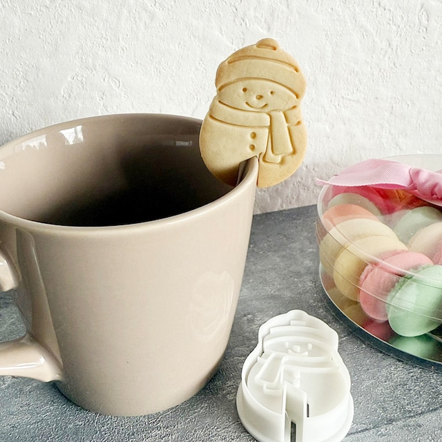 スノーマンのクッキー型 カップに引っ掛けられるクッキーです。 スタンプ付きなのでそのまま型抜きでも、アイシングしてカラーにしても 可愛くお使いいただけます。 押し出し用のプレーンな型を使うと、フレームからクッキーを押し出しやすくなります。 ※裏側に持ち手がついています。 【商品内容】 クッキー型 外枠1個+スタンプ1個 ※生地を簡単に押し出すためのプレーンな押し型はオプションです。 【サイズ】 クッキー型外枠の内寸です 約5cm 【素材】 PLA(植物由来のプラスチック) 【ご使用上のご注意】 プリンタの特性上、ざらつきや小さな隙間があったり、細い糸が残ることがあります。 細い線や細かい部分の破損にお気をつけください。 スタンプ型は細かい作りになっていますので、1度粉をはたいてから抜くと綺麗に抜けやすくなります。 電子レンジ、オーブン、食洗機にはお使いいただけません。 熱に弱いので、火気のそばには置かないでください。 -------------------------------------------------------------------------- ※プリンターの造形時特有のざらつき、小さな隙間、細い糸が残っている事がありますが異常ではありません。 ※造形層など気になる方は購入をおすすめできません。 ※細かいイラストで制作しているので、層の隙間にクッキーが入り込むことがあります。 ※イラストレーターとのコラボ作品の多くはイラストの良さを損なわないように 曲線をそのまま使っています。 正円、直線、左右対称ではないことをあらかじめご理解ください。 ※丁寧にお作りしておりますが、ハンドメイドな為接着剤のはみ出しやズレが微妙にある場合がございます。 (取れにくいように食品衛生法適合の接着剤で多めに使用しております) 取れてしまった場合は、申し訳ございませんがお手持ちの接着剤などでとめてください。 ※小さなパーツを使用している場合もございますので、お子様の誤飲などにも注意してください。 -------------------------------------------------------------------------- クッキー型 クッキー クリスマス マグカップ リース Merry Christmas クリスマス飾り 手作りおやつ オーナメント ふちクッキー クッキー型 クッキー クリスマス マグカップ リース Merry Christmas クリスマス飾り 手作りおやつ オーナメント