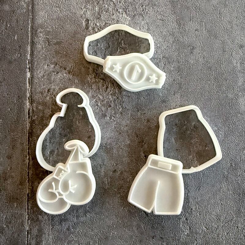 ボクシングのグローブ、パンツ、ベルトのクッキー型。
