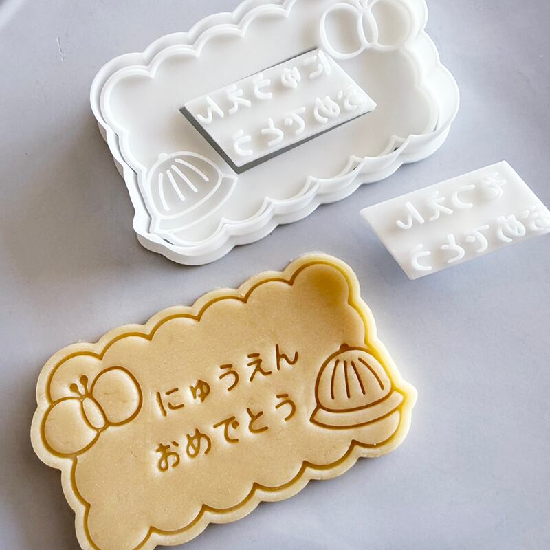 入園、卒園のお祝いにインパクトあるサイズのクッキー型です。