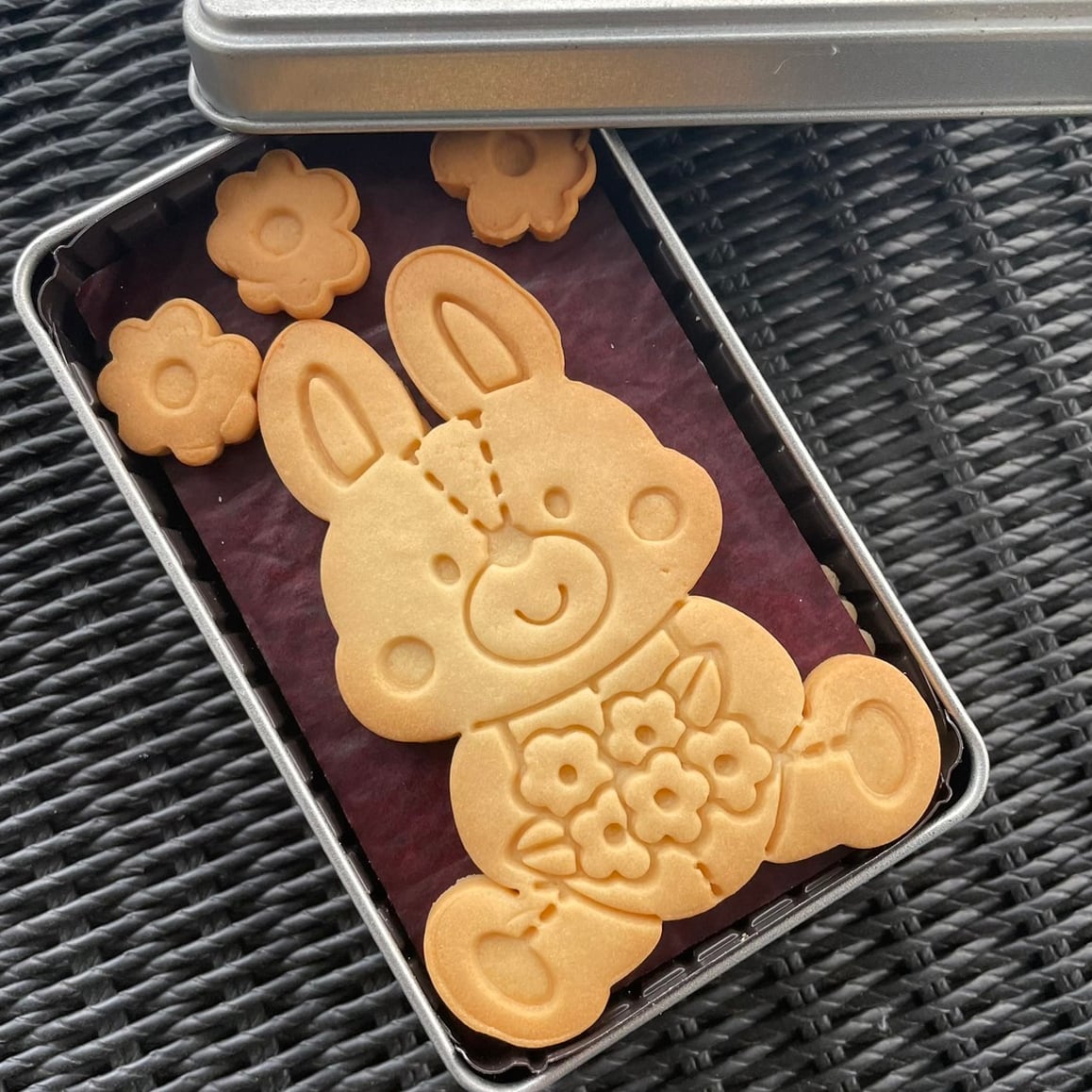花束を抱えたうさぎのぬいぐるみのクッキー型